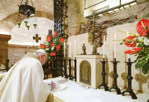 교황은 3일 아시시의 성 프란치스코 선종 794주년을 기념해 이탈리아 아시시 성 프란치스코 대성당에서 기념 미사를 주례하고, 새 회칙에 서명한 뒤 이튿날 바티칸 성 베드로 광장에서 열린 삼종기도 후 연설에서 새 회칙을 공식 발표했다.