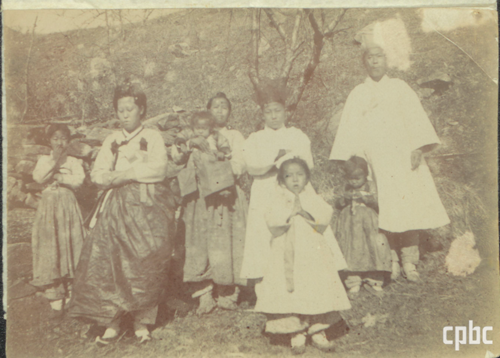 - 빌렘 신부가 촬영한 15세 안봉근(정자관 쓴 이) 가족과 신부 최 루갈다(22세).