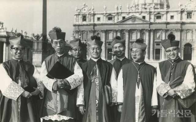 - 제2차 바티칸공의회 폐막 후 한국교회는 공의회의 가르침을 실천하고 적응하려는 의지를 다졌다. 사진은 1965년 10월 5일 제2차 바티칸공의회 참석한 한국주교단 일행 모습. 가톨릭신문 자료사진
